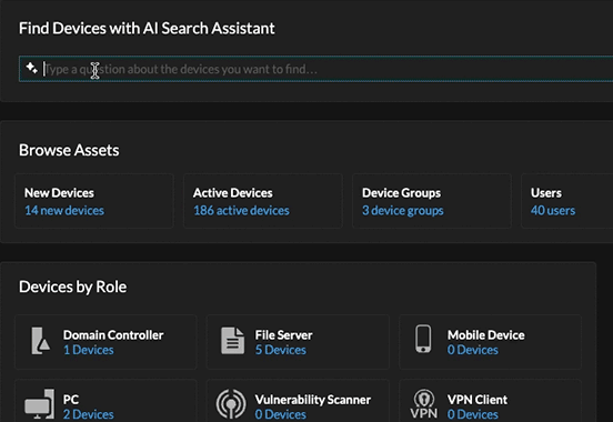 AI Search Assistant allows any security analyst at any level—even ones with no prior experience using RevealX—to start getting value from the tool immediately. On day one, users can start finding vulnerable devices and proactively hunt for threats on the network.